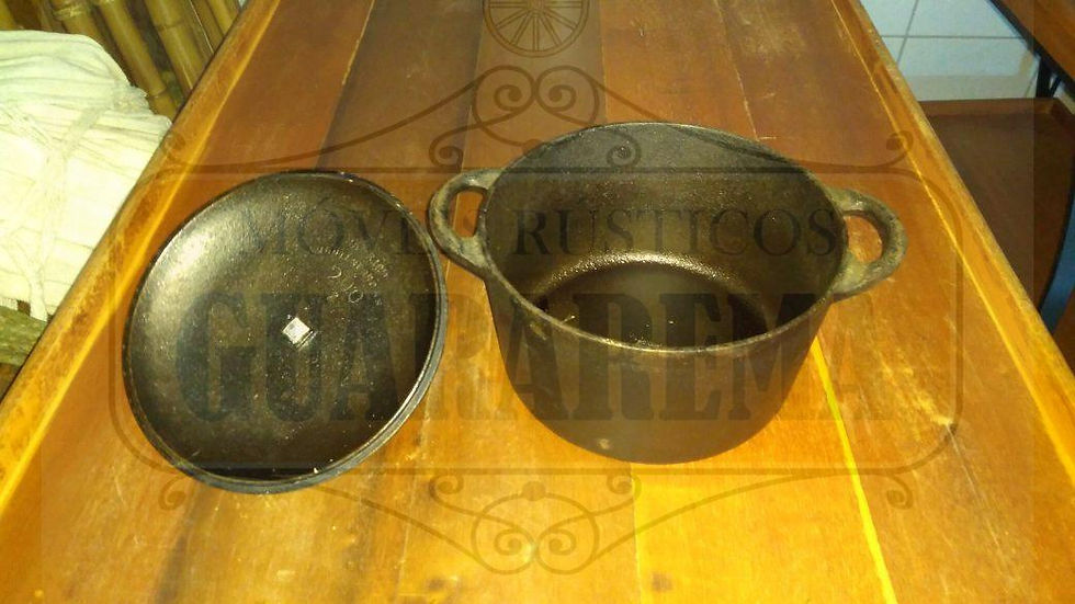 Caçarola de ferro com tampa para decoração.